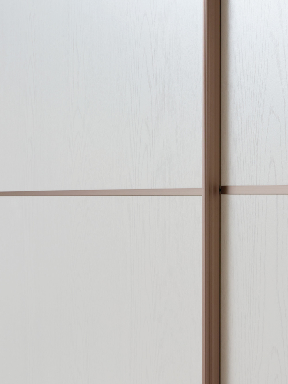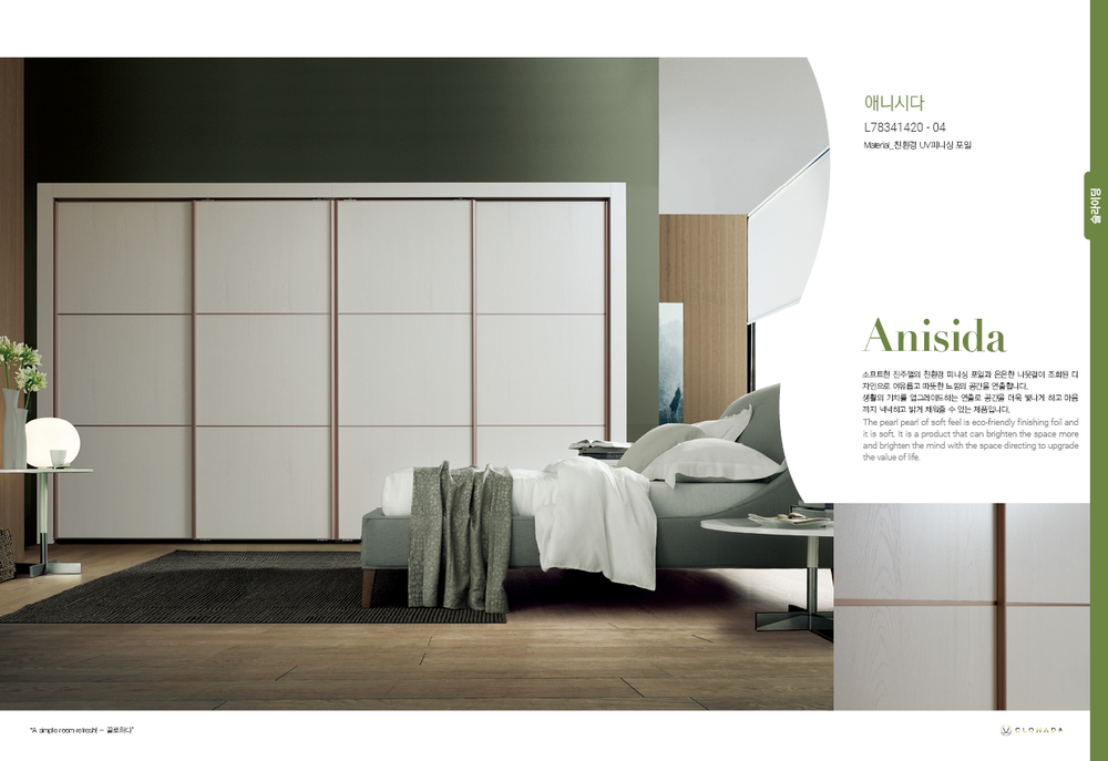 소프트한 진주펄의 친환경 피니싱 포일과 은은한 나뭇결이 조화된 디자인으로 여유롭고 따뜻한 느낌의 공간을 연출합니다.