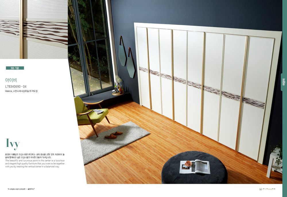중앙의 아름답고 고급스러운 포인트는 상하 중심을 균형 있게 처리하여 늘 곁에 함께하고 싶은 고급스럽고 우아한 고품격 가구입니다.