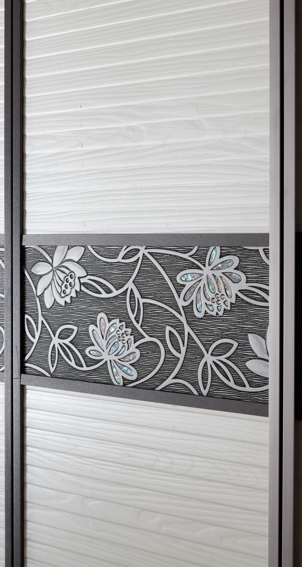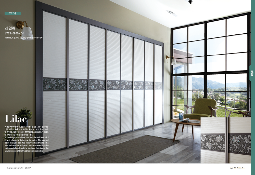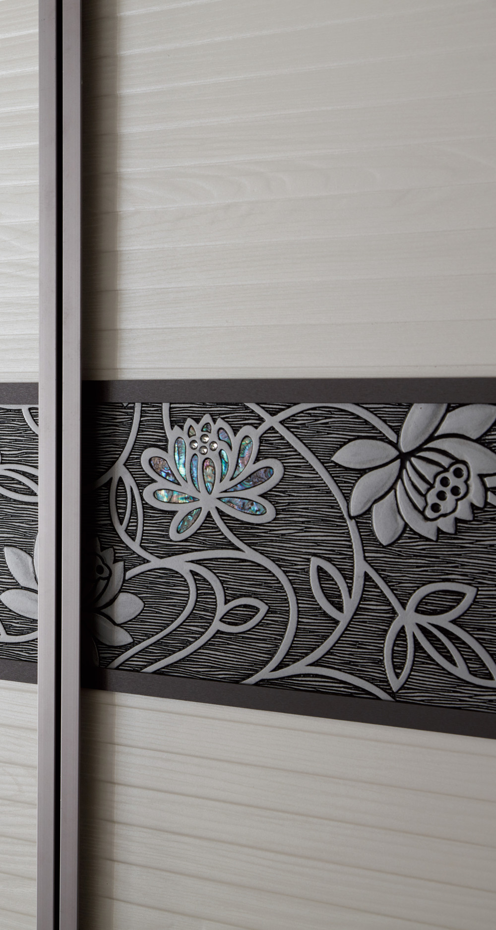 화사한 화이트컬러의 간결하고 아름다운 꽃 모양이 돋보이는 가구. 고급스러움을 느낄 수 있는 중앙 포인트의 문양이 수작업 장인의 손길이 묻어나는 천연자개와 스와브로스키 크리스털 큐빅의 고급스러움이 돋보이는 가구.