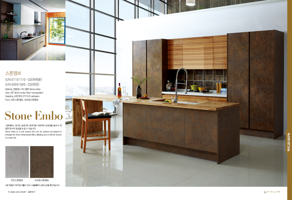 스톤엠보는 암석의 질감으로 표면가공 처리하여 입체감을 높여서 리얼한 암석의 질감을 느낄 수 있습니다.